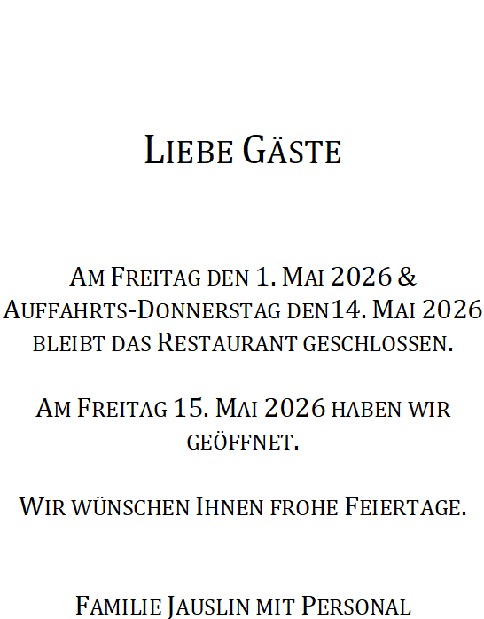Einen angenehmen Aufenthalt wünscht Ihnen Familie Jauslin & Co.